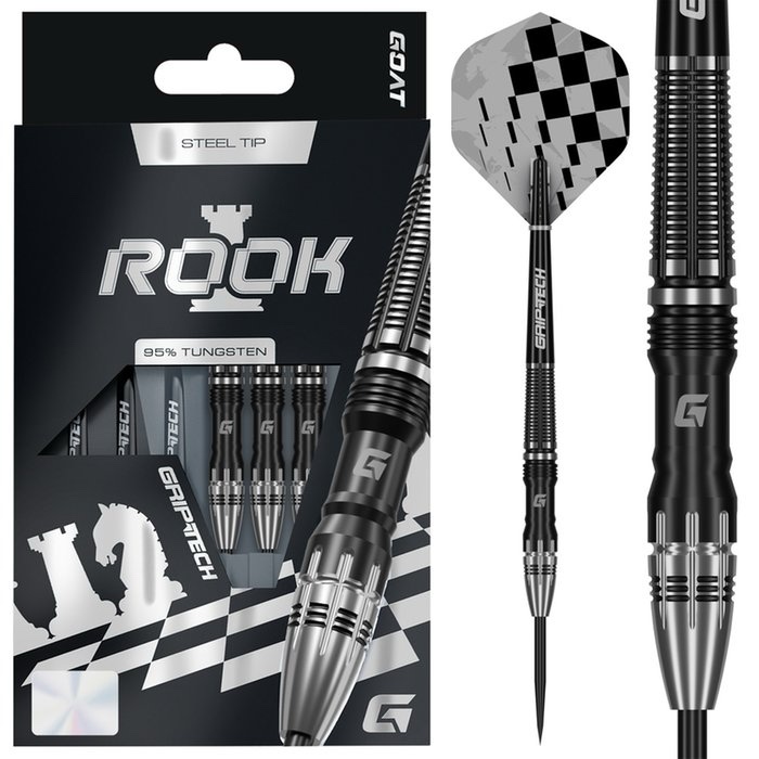 GOAT Rook 95% Steel Tip Darts on suunniteltu pelaajille, jotka luottavat keskittymiseen, hallintaan ja toistettavaan heittoon myös paineen alla. 95 % tungsten-materiaali mahdollistaa ohuen ja tasapainoisen rungon, joka tarjoaa vakaan tuntuman ja tukee tarkkoja ryhmityksiä taululla.