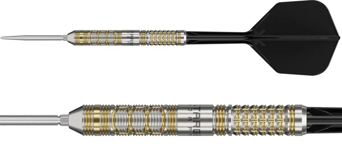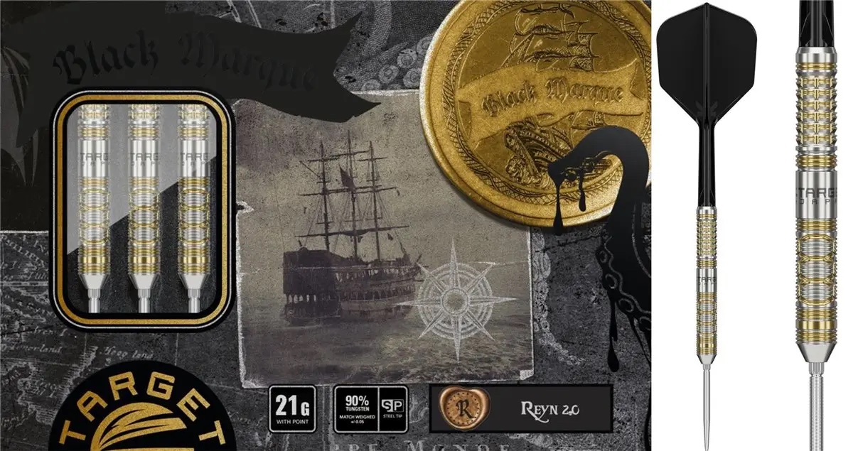Target Japan Black Marque Reyn G2 Swiss Point 90 % on premium-tason teräskärkinen darts-setti, jossa yhdistyvät laadukas 90 % tungsteenirakenne ja tarkasti suunniteltu barrel-profiili kilpailutason suorituskykyyn. 90 % tungsteeni tekee barrelista ohuen ja kompaktin, mikä parantaa ryhmittelyä taulussa ja tukee hallittua ja toistettavaa heittotuntumaa.