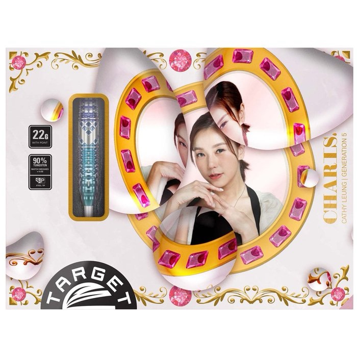 Target Japan Cathy Leung Charis G5 Swiss Point 90 % on premium-tason 90 % tungsteenista valmistettu teräskärkinen darts-setti. Eteen kapeneva barrel ja mikro- sekä ring-grip tarjoavat hallittua otetta ja tarkkaa heittotuntumaa kilpailu- ja aktiivikäyttöön.