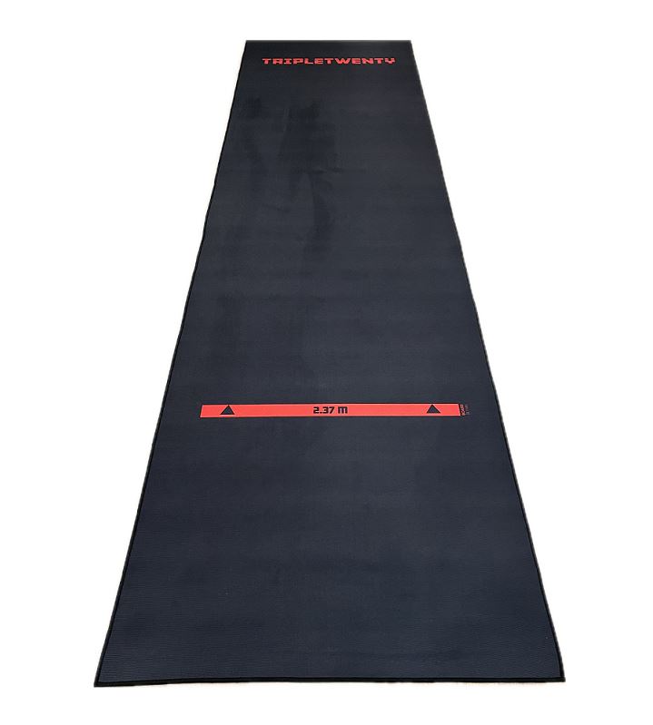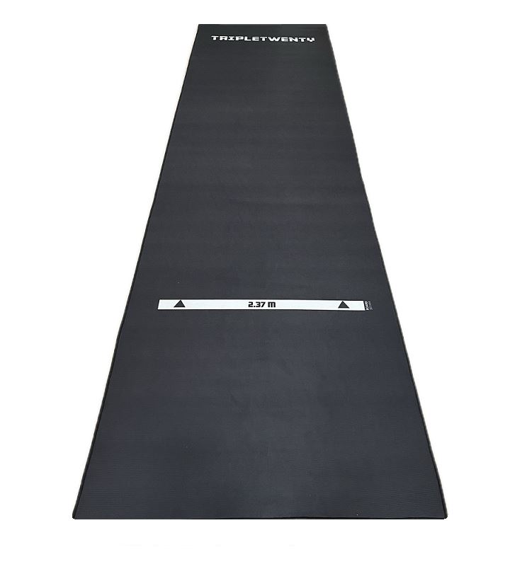 Tripletwenty-dartsmatto tarjoaa kestävän, yksinkertaisen ja toimivan tavan suojata lattiaa dartstikan pudotuksilta sekä luo selkeän ja siistin heittoalueen. Matossa on valmiiksi painettu heittoviiva, joten ei tarvitse mittailla etäisyyksiä tai teippailla lattiaa – aseta matto paikoilleen ja peli voi alkaa.